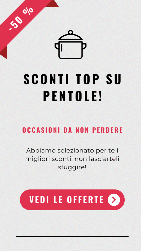 - Prezzi: quasi sempre più bassi rispetto al negozio “tradizionale”, dato che moltissime pentole a pressione sono in offerta.